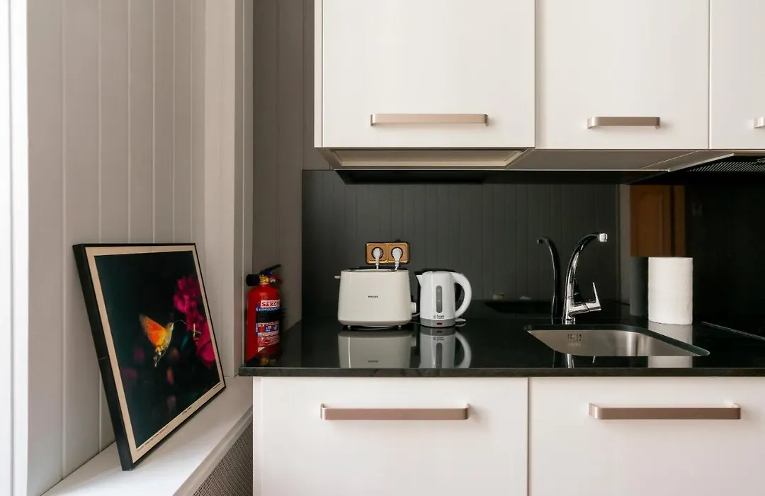 Διαμέρισμα των 38 τ. Μ. Διαθέτει παροχές τσάι/καφέ, internet υψηλής ταχύτητας και τηλεόραση σε κάθε δωμάτιο.